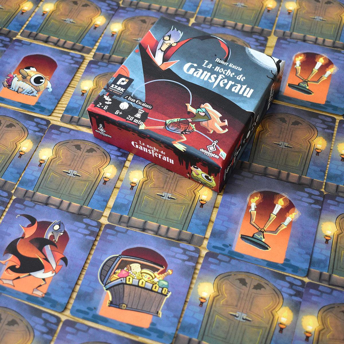 En La Noche de Gansferatu, te adentrarás en un castillo tenebroso repleto de tesoros, aldeanos perdidos y criaturas oscuras. Como valiente cazavampiros, deberás tentar a la suerte revelando cartas en una cuadrícula misteriosa. Pero cuidado, que Gangsferatu y sus Murciegansos te acechan en cada rincón.