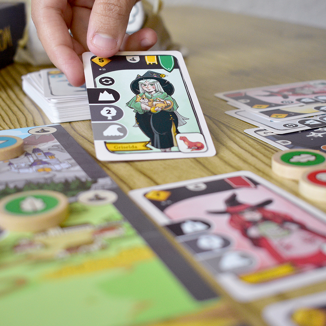 A lo largo de la partida, deberás gestionar recursos, planear acciones y anticiparte a tus oponentes para fortalecer tu reino mágico. El tablero se convierte en un espacio de competencia directa, donde cada movimiento puede cambiar el equilibrio de poder y acercarte —o alejarte— de la victoria.